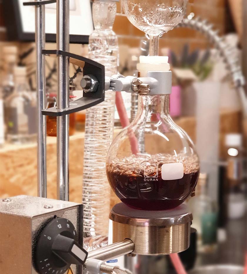 Today, the gin enthusiasm of the two friends has evolved from a hobby into a full-time job and their own business. The Njord distillery is now located in an old pump house on Kalkværksvej in Aarhus' South Harbor, and in the hall where the pumps once stood, now stands Frau Müller: namely, Njord's distillation equipment. The equipment consists of a custom-made copper dome with a column distillator and a steam infusion basket that captures the fine flavor nuances from herbs, berries, and flowers. Additionally, there is a vacuum distillator used for the many small-scale flavor tests. Playing with nature's flavors and aromas is simply what has the friends' interest and primary focus.
