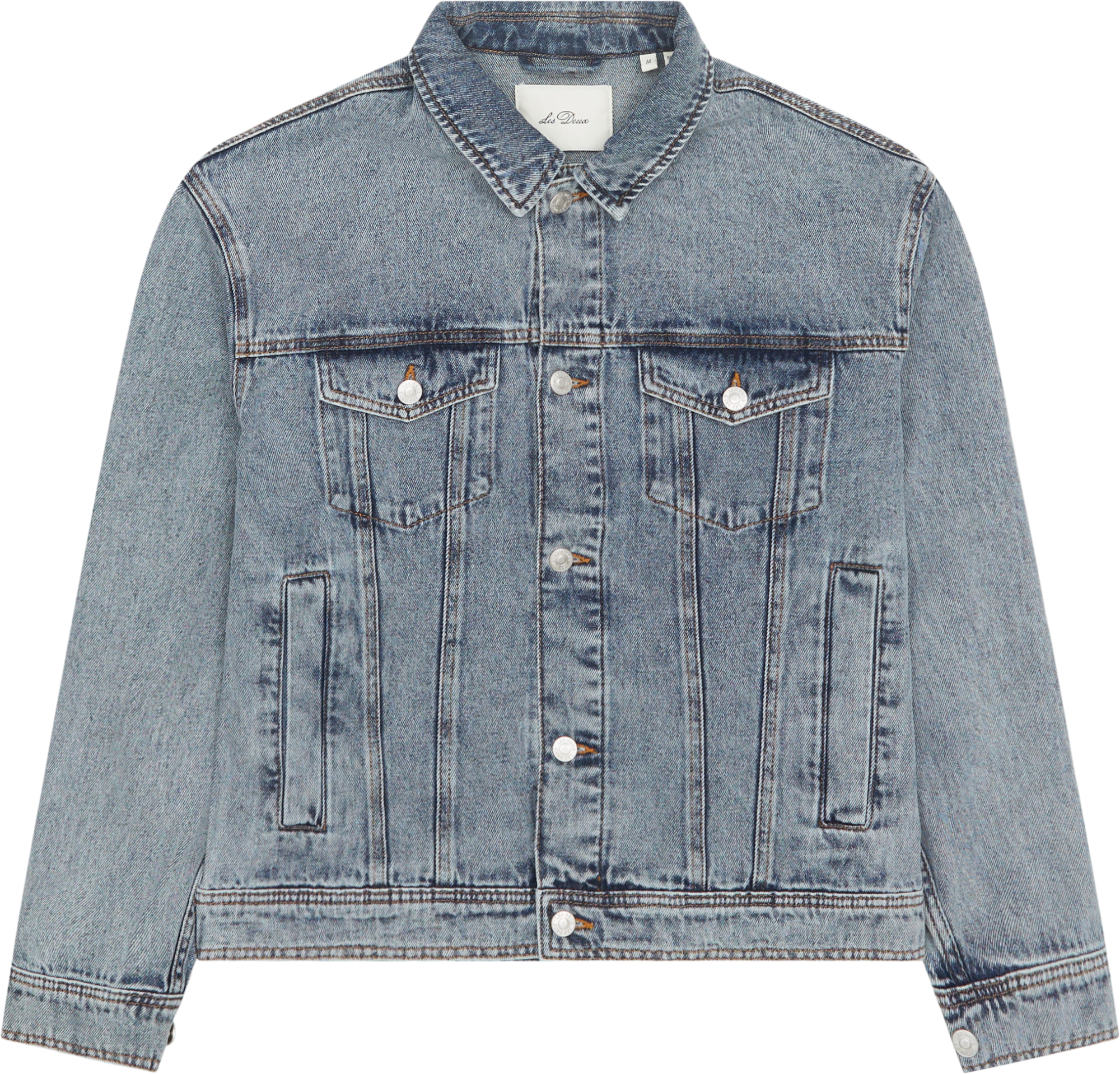 Lägg till en cool jeansjacka från Les Deux. Den har en sval tvätt som kan stylas perfekt med en mängd olika outfits. Bär den till vardags eller till ett festligare tillfälle.